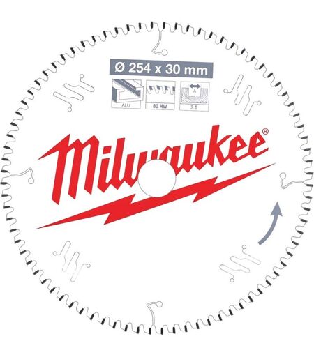 The Milwaukee 254 x 30 x 3.0 x 80T Circular Saw Blade is constructed from laser cut steel to ensure precision and accuracy. The premium cobalt infused tungsten carbide guarantees clean and sharp cuts with every use. - STK ...
