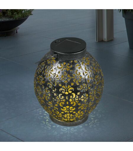 ETC-SHOP Boule solaire antique Boule solaire en métal pour jardin Lampes solaires boule pour l'extérieur, avec effet de lumière orientale en argent à