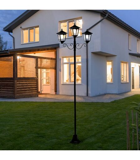 ETC-SHOP Lanterne de jardin grande pour candélabre extérieur 3 flammes lanterne extérieure solaire sur pied extérieur, aluminium fer noir, led blanc chaud, h