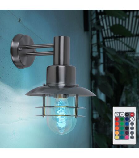 ETC-SHOP Lampe d'extérieur dimmable avec télécommande Lanterne murale d'extérieur rétro vintage Applique murale led rvb suspendue, acier inoxydable brossé,