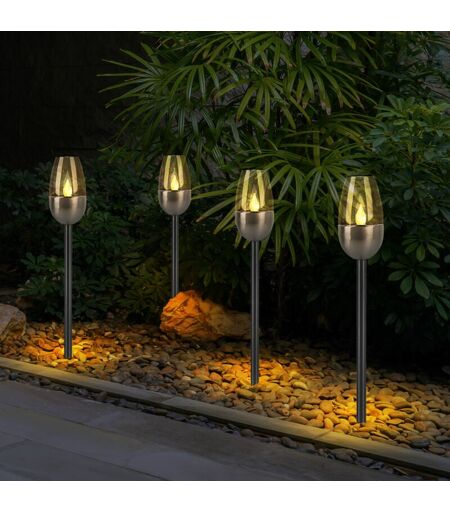 ETC-SHOP Lampe d'extérieur, lampe solaire enfichable, torche de jardin avec effet de feu, lampe de terrasse, batterie, métal, noir, LED, DxH 6x38cm, lot de 4