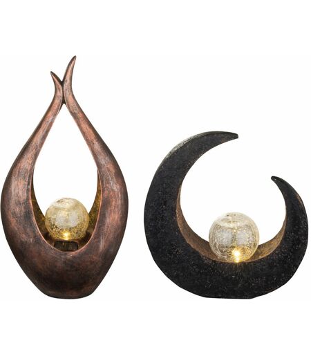 ETC-SHOP 2x led lampes extérieures solaires bronze boule de verre chemin de jardin étage lune faucille stand lumières noir brun