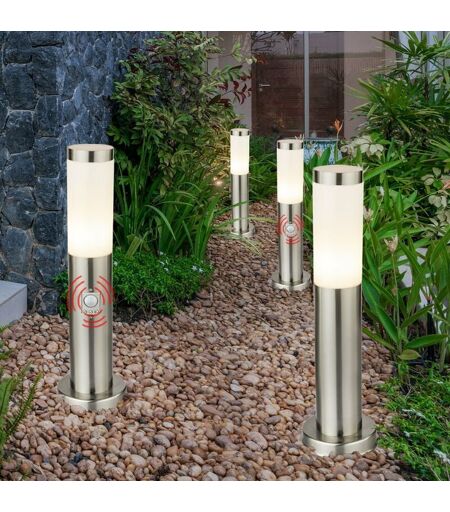 ETC-SHOP Lot de 4 lampadaires d'extérieur éclairage chemin lampadaires inox détecteur de mouvement IP44 E27