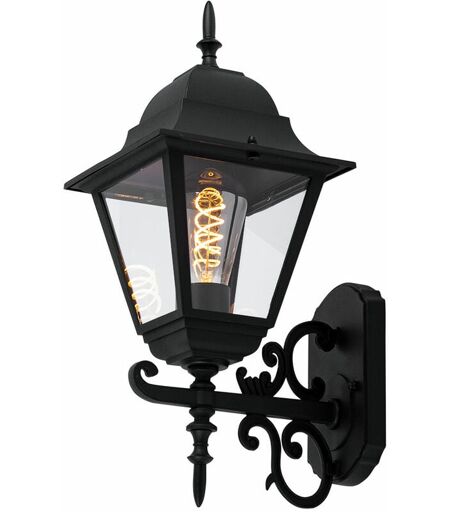 ETC-SHOP Applique murale d'extérieur style maison de campagne lanterne noire, aluminium, verre clair, 1x E27, LxHxP 18,5x44,5x24,5cm, maison de jardin porte