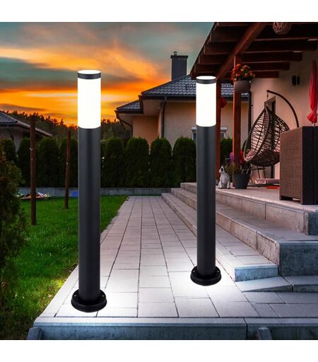 ETC-SHOP 2x éclairage extérieur sur pied chemin de maison de jardin lampe de base sur pied en acier inoxydable anthracite