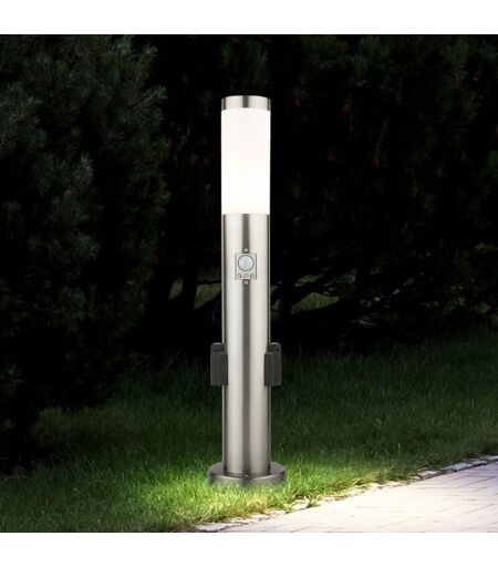 la description Lampadaire en acier inoxydable pour l'extérieur. Avec plusieurs de ces lampadaires, vous pouvez, par exemple, créer un chemin lumineux à travers votre jardin ou simplement mettre les zones appropriées sous les feux de la rampe. Il n'y a pas de limites à vos idées, car grâce à la classe de protection IP44, cet élégant lampadaire défie les intempéries et est prédestiné pour une utilisation en extérieur. Le boîtier en acier inoxydable de haute qualité est sûr de vous offrir un plaisir à long terme. Grâce aux deux prises intégrées, ce luminaire donne non seulement de la lumière, mais aussi de l'électricité pour alimenter des outils de jardin tels que B. pour faire fonctionner la tondeuse à gazon. Équipée d'un détecteur de mouvement, cette lampe apporte une sécurité supplémentaire à votre maison. Avec le piquet de sol fourni, vous pouvez facilement fixer la lampe dans le sol, par exemple sur la pelouse. La source lumineuse n'est pas incluse dans la livraison. Un lampadaire ...
