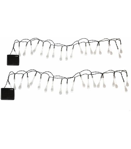 la description Créez la bonne ambiance de fête dans votre espace extérieur avec ces guirlandes lumineuses à énergie solaire. Grâce aux cellules solaires intégrées, qui chargent une batterie intégrée, cette lampe peut être placée sans connexion électrique. Cette lampe solaire se charge pendant la journée et émet sa lumière stockée jusqu'à 8 heures lorsqu'il fait noir. La guirlande lumineuse peut être réglée comme lumière clignotante ou permanente. En raison de la classe de protection IP44, la lampe est protégée contre les projections d'eau et est donc prédestinée à une utilisation en extérieur. Les lampes LED RVB de haute qualité sont fermement intégrées dans la lampe. Deux guirlandes lumineuses sont incluses dans la livraison. Lampe de détail • Type de lampe : lampe solaire • Matériau : plastique • Abat-jour : plastique • Degré de protection : IP44 • Interrupteur : feu fixe ou clignotant • Pile : AA ; Ni-Mh; 300mAh • Taille de goutte DxH en cm : 2x7,5 • Longueur totale en cm : 390 • ...