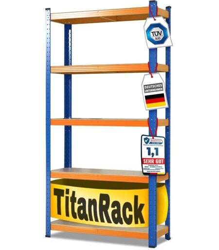 mammut Étagère pour charge lourde Meuble de rangement 5 Étages (aggloméré) Bleu-orange 220 x 120 x 45 cm
