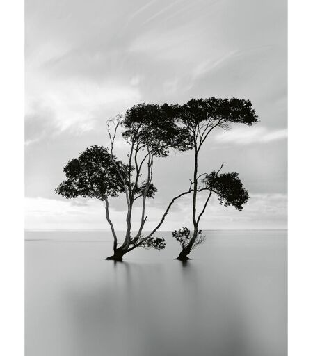 A.S. CREATIONS Papier peint panoramique mer tranquille Tapisserie panoramique noir et blanc Papier peint panoramique arbre dans l'eau paysage effet zen - 192 X