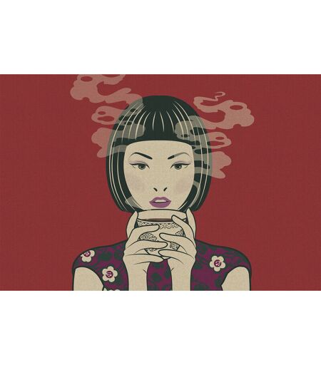 A.S. CREATIONS Papier peint panoramique japonais tendance Tapisserie panoramique idéale pour cuisine Papier peint panoramique à motif femme - beige, rouge, noir