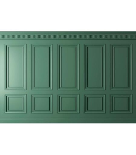 A.S. CREATIONS Papier peint panoramique vert 3D effet moulures Tapisserie panoramique verte idéale salon Papier peint panoramique chambre adulte