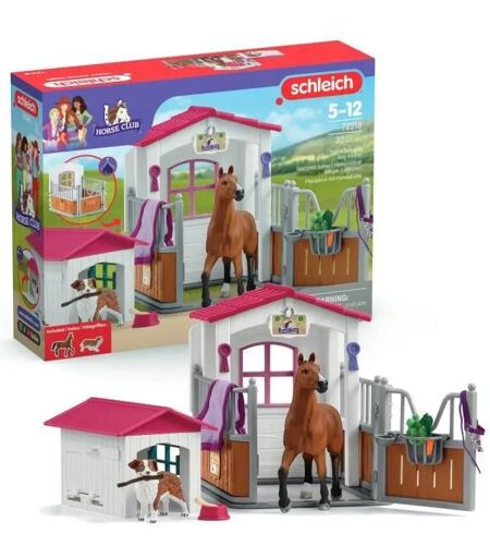 Box Avec Jument Hanovrien Et Berger Australien. Figurine Cheval Et Accessoires. Schleich 72218 Horse Club. Des 5 Ans