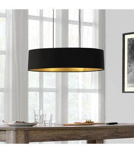 Description générale Notre luminaire suspendu inspiré par les nouvelles tendances est l'accessoire parfait pour éclairer votre salon, séjour ou chambre à coucher. Spécifications techniques Éclairage adapté à toutes les pièces avec 2 douilles Conforme aux normes CE et RoHS Douille: 2 x E27 max. 60W (ampoules non incluses) Matière de la fixation murale: métal Matière de l'abat-jour: textile Couleur: Noir Hauteur: environ 132 cm (avec câble) Longueur du câble: environ 109,5 cm Dimensions de l'abat-jour (L x l x h): 78 x 23 x 20,5 cm Dimensions de la fixation (L x l x h): 40 x 4 x 2 cm Compatibilité et accessoires Compatible avec des ampoules E27 Idéal pour tout type de décoration intérieure Installation Facile à installer sur tout type de mur Fixation murale incluse Utilisation Convient pour un éclairage d'ambiance dans divers espaces Peut être utilisé comme pièce maîtresse dans une pièce ...