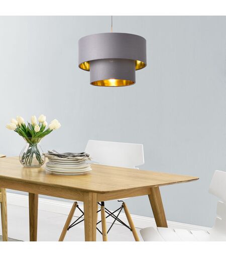 Suspension Lopar E27 60W en Métal et Textile Diamètre 30 cm Gris Doré [ Lux.pro