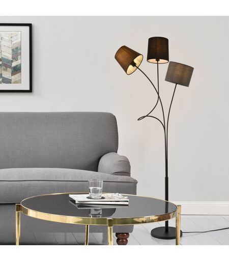 Lux.pro Lampadaire Lampe sur Pied avec 3 Douilles Métal et Tissu 3 x E14 Hauteur 146 cm 3 Abat-jour Marron Noir Gris Armature Noir