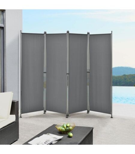 Brise-vue / Séparateur Ce paravent est la solution parfaite pour écarter le regards des voisins. Vous pourrez l'installez facilement et rapidement dans le jardin, sur la terrasse, au balcon ou même à l'intérieur de la maison. Description : - se compose de 4 panneaux - usage polyvalent (barrière, ombrage, décoration...) - assemblage facile et rapide - idéal pour votre jardin, terrasse, balcon ou dans votre maison - design élégant et discret - résistant aux UV et aux intempéries - pieds stabies Matière : - armature en acier, revêtu par poudre - toile : 100% polyester Couleur : - armature : anthracite (revêtu par poudre) - toile : gris ardoise Dimensions : - Dimension entière : 215 cm - Hauteur : 170 cm Contenu de la livraison : 1 x paravent Produit de la marque [pro.tec]. ...