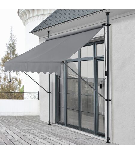 Auvent rétractable Ce store banne manuel est un choix parfait pour ombrager votre terrasse ou balcon. Une solution téléscopique que vous pourrez installer entre deux surfaces fixes en paralèlle rapidement et facilement. Ainsi cette marquise pratique rend vos moments de détente, de convivialité plus agréable à l'extérieur de la maison sur la terrasse, au balcon ou dans le véranda par exemple. L'inclinaison peut être réglée manuellement, il suffit de dévisser légèrement les vis de fixation au niveau des barres téléscopiques et choisir l'angle convenable. Description : - grâce au système téléscopique, pour la fixation, vous n'avez pas besoin de percer - vous pourrez le monter partout où deux surfaces solides permettent l'installation des barres téléscopiques - hauteur adaptable à l'environnement : variable entre 220-309 cm - l'inclinaison du store réglable pour une parfaite adaptabilité aux rayons du soleil - usage simple et facile - se déploie et s'enroule facilement à l'aide de la ...