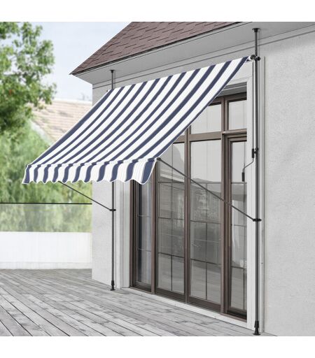 Auvent rétractable Ce store banne manuel est un choix parfait pour ombrager votre terrasse ou balcon. Une solution téléscopique que vous pourrez installer entre deux surfaces fixes en paralèlle rapidement et facilement. Ainsi cette marquise pratique rend vos moments de détente, de convivialité plus agréable à l'extérieur de la maison sur la terrasse, au balcon ou dans le véranda par exemple. L'inclinaison peut être réglée manuellement, il suffit de dévisser légèrement les vis de fixation au niveau des barres téléscopiques et choisir l'angle convenable. Description : - grâce au système téléscopique, pour la fixation, vous n'avez pas besoin de percer - vous pourrez le monter partout où deux surfaces solides permettent l'installation des barres téléscopiques - hauteur adaptable à l'environnement : variable entre 220-309 cm - l'inclinaison du store réglable pour une parfaite adaptabilité aux rayons du soleil - usage simple et facile - se déploie et s'enroule facilement à l'aide de la ...