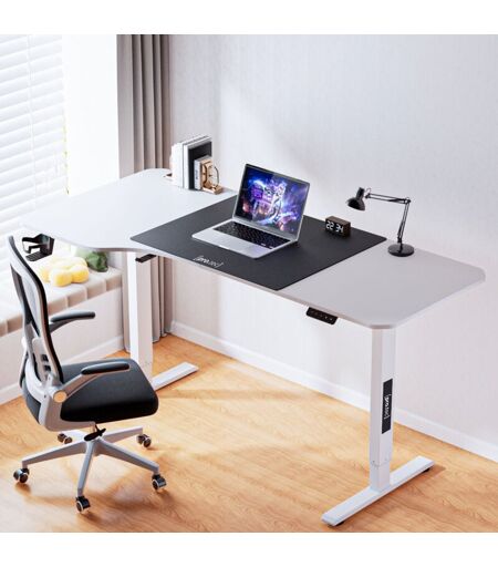 Bureau électrique à hauteur réglable La hauteur de cette table peut être réglée sans effort et vite, par une simple pression sur un bouton. Ainsi vous allez obtenir un équilibre confortable entre la position assise et la position debout pendant la journée de travail. La fonction de mémoire vous permet d'enregistrer 2 hauteurs différentes, ce qui vous assure de passer de la position assise à la position debout rapidement. Description : - utilisable en étant assis ou bien debout - parfait pour l'espace de travail - pied de table réglable en continu (1 cm par seconde) - fonction mémoire, pour enregistrer la position assise ou debout - serre-câbles pratiques au fond de la table et 2 trous de passage de câbles - porte-boissons et crochet pour casque inclus - avec tapis de souris XXL amovible - montage rapide et facile - arrêt automatique en cas d'obstacle - moteur silencieux - plateau en deux parties - capacité de charge jusqu'à 60 kg Plateau : en forme de L Matière : - plateau : panneau ...