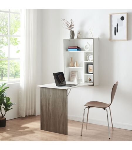 Bureau mural pliant Greve 72 x 77 x 59 cm blanc effet bois [en.casa]