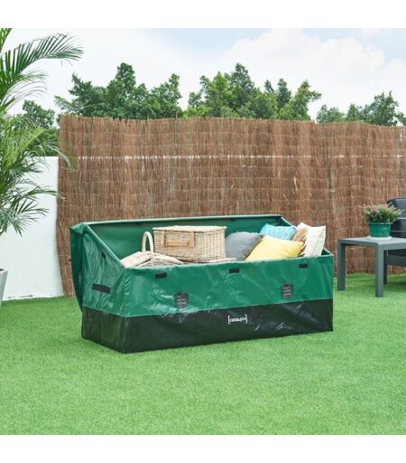 Boîte de rangement d'extérieur Cette boîte de rangement est parfaite pour garder votre matériel de jardin bien organisé et protégé. Spacieuse et robuste, elle accueille confortablement tous vos coussins de jardin, accessoires de piscine et outils de jardin. Résistante aux intempéries, elle est dotée d'une bâche imperméable pour protéger vos objets des éléments. Les fentes d'aération et le toit incliné assurent une bonne ventilation et empêchent l'eau de s'accumuler. Points forts : - convient à tous les objets, comme les coussins ou les outils de jardin. - protège de la pluie, des rayons du soleil et du vent - toit incliné permettant un écoulement facile de l'eau - fentes d'aération pour une ventilation adéquate - le cadre est constitué de barres qui s'emboîtent les unes dans les autres - matériau robuste et résistant aux intempéries - poignées pour un transport facile - montage simple et rapide - capacité jusqu'à 560 L Matière : - barres : acier laqué - bâche de protection : 100% ...