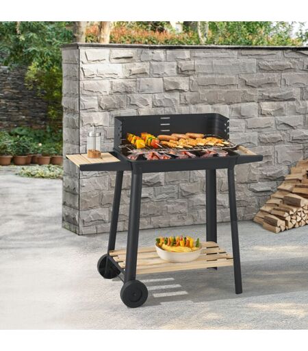 Casa.pro - Chariot de barbecue au charbon de bois Ari noir naturel