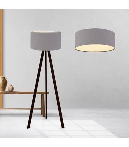 Lot de 2 lampes pour intérieur Cet ensemble de luminaires intérieur se compose d'une suspension et d'un lampadaire. Ils seront l'ornement de la pièce en s'adaptant à la décoration de votre maison. Description : - set de 2 luminaires design - conçu pour un éclairage intérieur - doté d'une douille par lampe Caractéristiques : - douille: 2 x E27, max. 20W (sans ampoule) - alimentation : 230V, 50Hz - type d'interrupteur (suspension) : mural - type d'interrupteur (lampadaire) : sur câble Matière : - élément de fixation (suspension) : plastique - structure (lampadaire) : MDF - abat-jours : tissu (100 % polyester) Dimensions : - hauteur totale (suspension) : 70 cm - hauteur totale (lampadaire) : 140 cm - abat-jours (hauteur x diamètre) : 20 x 38 cm - longueur du câble (lampadaire) : 200 cm Couleur : - élément de fixation (suspension) : blanc - structure (lampadaire) : noir - abat-jours : gris Contenu de la livraison : - 1 x lampe à suspendre - 1 x lampadaire A noter : Les ampoules ne font ...