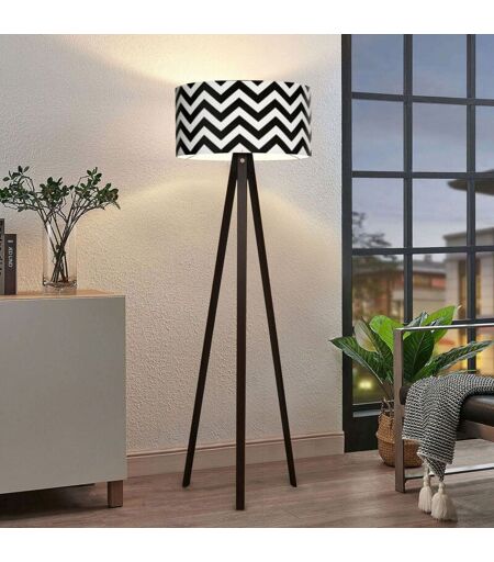 Lampadaire Ce lampadaire chic et moderne apporte une touche de style à votre intérieur grâce à son design épuré et son abat-jour en tissu. Parfait pour le salon, la chambre ou tout espace de vie, il combine esthétique et fonctionnalité pour créer une atmosphère douce et accueillante. Grâce à son interrupteur à cordon pratique et à son câble de 2 mètres, ce lampadaire se place facilement où vous le souhaitez. Point forts du produit : - lampadaire stylé au design exceptionnel - idéal pour votre espace de vie - avec une douille de lampe Caractéristiques techniques : - douille de lampe : 1 x E27, max. 20W (livré sans ampoule) - tension : 230V, 50Hz - type d'interrupteur : interrupteur intermédiaire à cordon Matière : - structure : MDF - abat-jour : tissu (100% polyester) Dimensions : - hauteur totale : 140 cm - abat-jour (h x Ø) : 21 x 38 cm - longueur du câble : 200 cm Couleur : - structure : noir - abat-jour : noir / blanc Contenu de la livraison : 1 x lampadaire (ampoules non comprises ...