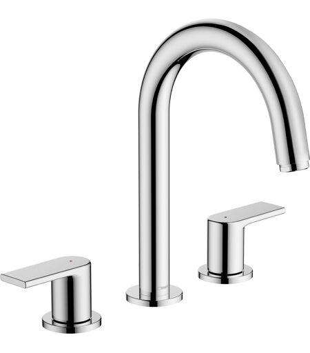 hansgrohe Vernis Shape mitigeur lavabo 3 trous 71563000 Zone de confort 150 Projection 166 mm Jet laminaire de type jet Débit à 3 bar 5 l/min Vannes céramique chaud/froid 90° adapté pour chauffe-eau garniture de vidange tige match1 G 2000 2000 / 4 Robinet de vidange synthétique Type de raccordement G 3/8 tuyaux de raccordement EcoSmart Technologie de puissance aérienne ...
