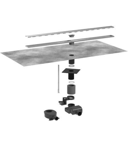 hansgrohe RainDrain Allround 1 x kit complet caniveau de douche 700 Détails du produit Set composé de : Set de finition caniveau de douche, set dinstallation, voile détanchéité prémonté en usine, lève-couverture et siphons Matériau du recouvrement : acier inoxydable Membrane détanchéité en 1300 x 1500 mm pour une étanchéité complète de toute la zone humide Hauteur de leau de barrage : 28 mm, 50 mm direction de la sortie : horizontale surface facile à nettoyer kit dinstallation réglable en hauteur débit dévacuation installation plate : jusquà 32 l/min. Débit découlement installation standard : jusquà 33 l/min. Domaine dapplication : construction neuve et rénovation épaisseur du carrelage : jusquà 18 mm siphon amovible corps de siphon orientable et réglable siphon facile à nettoyer le ...