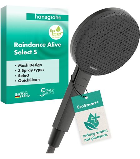 Hansgrohe Raindance Alive Select S 24512340 Pomme de douche à économie d'eau + 125 mm, 3 jets, chrome noir brossé