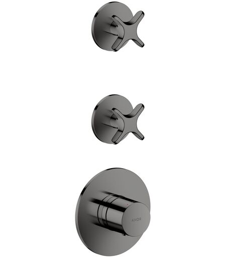 Module thermostatique encastré hansgrohe AXOR One 48712330, 2 sorties, avec poignée croisée, chrome noir poli