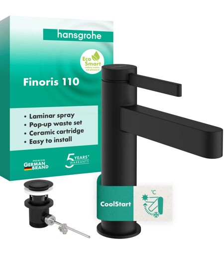 Hansgrohe Finoris mitigeur monocommande mitigeur lavabo 76025670 CoolStart, saillie 139 mm, avec tirette, noir mat