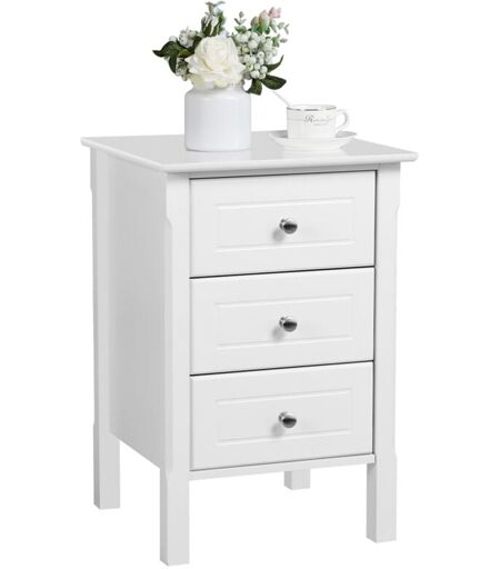 Yaheetech Table de Chevet Bois avec 3 Tiroirs Bout de Canapé 40 x 40 x 60 cm Table de Nuit pour Salon Chambre à Coucher Blanc