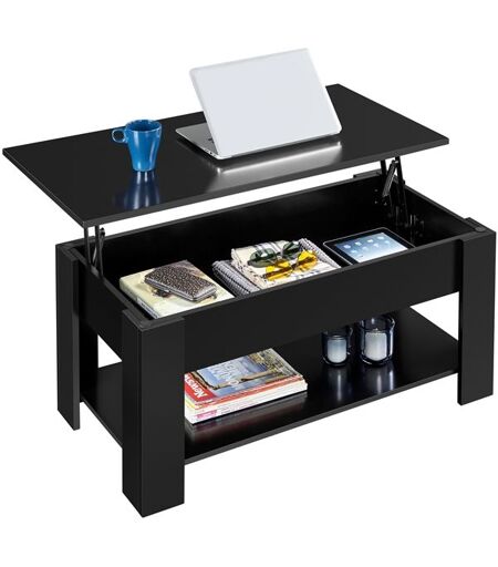 Yaheetech Table Basse Avec Plateau Relevable En Pin Compartiment Caché Table De Salon Moderne Revêtement Laqué 98 X 50 X 42 Cm Noir
