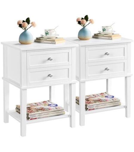 YAHEETECH Lot de 2 Tables de Chevet en Bois Blanc Tables de Nuit Bout de Canapé avec 2 Tiroirs et 1 Étagère de Rangement Désign Moderne pour Chambre et Salon