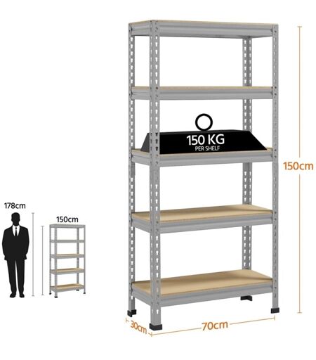 Etagères de Rangement Étagère Metallique Atelier/Garage/Cuisine Charge Lourde 150 kg par Niveau sans Boulons 150 x 70 x 30 cm/Gris Clair - Yaheetech