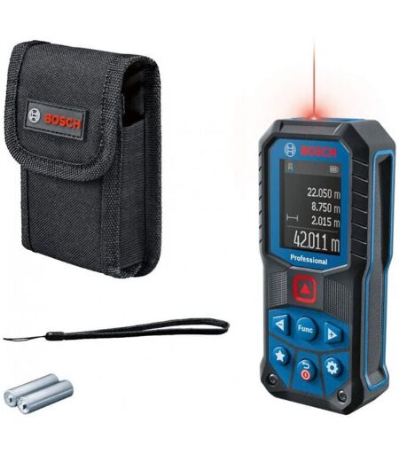 Description générale Le télémètre laser GLM 50-22 Professional de Bosch est conçu pour des conditions de travail exigeantes. Grâce à son boîtier renforcé, il résiste à des chutes allant jusqu'à 1,5 mètre sur des surfaces dures, ce qui garantit une utilisation fiable sur les chantiers. Il est également étanche et résistant à la poussière, rendant cet appareil adapté à une variété de travaux en intérieur et extérieur. Spécifications techniques Diode laser : 635 nm, < 1 mW Plage de mesure : 0,05 - 50,00 m Classe laser : 2 Couleur du laser : rouge Précision de mesure : ± 1,5 mm Temps de mesure : < 0,5 s Temps de mesure maximal : 4 s Alimentation : 2 piles 1,5 V LR6 (AA) Coupure automatique : 5 min Unités de mesure : m/cm/mm/ft/inch/ft-inch Nombre de valeurs d'enregistrement : 10 Filetage du trépied : 1/4'' Poids : 0,2 kg Compatibilité et accessoires Housse de protection Dragonne 2 piles 1,5 V LR6 (AA) Installation Le télémètre est prêt à l'emploi après l'insertion des piles. Aucune ...