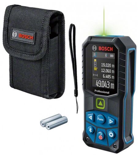 GLM 50-27 CG Professional - Télémetre laser Tres bonne visibilité lors de mesures longues distances dans des intérieurs tres lumineux grâce au laser vert Idéal pour les travaux de construction exigeants grâce a la protection IP 65, au boîtier caoutchouté absorbant les chocs et a la capacité de résister a des chutes d’une hauteur de 1,5 m Documentation rapide et transfert rapide des données avec la connectivité Bluetooth® et l’application MeasureOn Bosch Inclus dans toutes les variantes Dragonne Housse de protection En plus pour cette variante 2 piles 1,5 V LR6 (AA) Caractéristiques techniques Données les plus importantes Diode laser 515 nm, < 1 mW Plage de mesure* 0,05 – 50,00 m Classe laser 2 Précision de mesure, typ.* ± 1,5 mm s Plage de mesure d’inclinaison 0 – 360° (4 x 90°) Précision de mesure (typique)* ± 0,2° Temps de mesure typ. 0,5 s Temps de mesure maxi. 4 s Alimentation 2 piles 1,5 V LR6 (AA) Coupure automatique 5 min Poids env.* 0,2 kg Unités de mesure m/cm/mm/ft/inch/ft-inch Nombre de valeurs d'enregistrement 30 Étanchéité a l'eau et a la poussiere IP 65 Filetage du trépied 1/4" Transfert des données Bluetooth™ 4.2 Low Energy Couleur du laser verte * Vous en saurez plus sur les écarts en cliquant sur le lien suivant : Spécifications techniques de produits GLM 50-27 CG Professional: Informations complémentaires Points forts du produit Le télémetre laser GLM 50-27 CG Professional offre une tres bonne visibilité du point laser, une robustesse a toute épreuve et permet de tout documenter rapidement. Son point laser vert mieux visible qu’un point laser rouge le prédestine aux mesures longues distances dans des intérieurs tres lumineux. Conçu pour les chantiers exigeants, il dispose d’un indice de protection IP 65 et d’un boîtier caoutchouté absorbant les chocs lui permettent de résister a des chutes d’une hauteur de 1,5 m sur du béton. La connectivité Bluetooth® et l’application MeasureOn Bosch permettent de tout documenter rapidement et de transférer les résultats de mesure en un rien de temps. Équipement et application Ce télémetre laser est idéal pour établir de la documentation, calculer les besoins en matériel, la superficie de pieces et de murs et la pose d’éléments de fixation. Il s’adresse aux architectes, électriciens et a de nombreuses autres professions. Informations complémentaires Il émet un son et des vibrations quand les mesures effectuées sont bonnes et offre une plus grande autonomie (comparé au GLM 50 C Professional).> ...