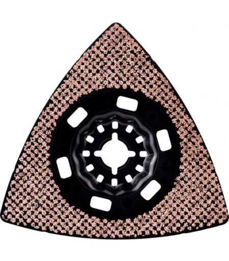 Plateau de ponçage EXPERT AVZ 90 RT6 – Pour outils oscillants multi-fonctions Ponçage longue durée avec la technologie Carbide Technology Longue durée de vie pour le ponçage multi-matériaux Durabilité exceptionnelle garantie par la technologie Bosch Carbide Technology La forme delta atteint les coins tout en assurant un meulage efficace Support Starlock pour un transfert de puissance optimal et un changement de lame facile en 3 secondes Longue durée de vie pour le ponçage multi-matériaux 1Durabilité exceptionnelle garantie par la technologie Bosch Carbide Technology 2La forme delta atteint les coins tout en assurant un meulage efficace 3Nettoyage facile pour maintenir les meilleures performances 4Poncez les espaces les plus étroits avec cette lame extra-fine EXPERT Sanding Plate pour une longue durée de vie pour le ponçage multi-matériaux Les petits travaux de ponçage difficiles pour enlever les anciens matériaux et préparer les surfaces pour le travail peuvent etre presque impossibles avec des ponceuses classiques ou a la main. Meme si vous pouvez atteindre la surface, ces tâches détériorent la feuille abrasive. Mais avec le plateau EXPERT Sanding Plate, vous pouvez atteindre les coins et poncer les matériaux difficiles en utilisant votre outil multifonction oscillant. Les grains grossiers et a structure ouverte du plateau RT2 (grosseur de grain 20) sont parfaits pour enlever le mortier sous les carreaux, éliminer la colle a moquette ou encore pour le dégrossissage du bois. Il n'y a pas mieux que le plateau RT4 (grosseur de grain 40) pour éliminer une épaisse couche de peinture, mais il peut également s'attaquer au mortier et a la colle quand il le faut. Le plateau RT6 (grosseur de grain 60) est l'expert en peinture, tandis que le plateau RT10 (grosseur de grain 100) est idéal pour le ponçage et la préparation de surfaces propres de bois .> ...