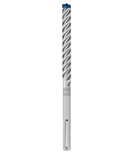Foret EXPERT SDS max-8X – Pour marteaux burineurs Dure jusqu'a 3 fois plus longtemps qu'un foret Bosch SDS max-4 Longue durée de vie pour le perçage dans le béton armé Tete de foret exceptionnellement résistante avec la technologie Bosch Carbide Technology Perçage du béton armé avec une tete entierement en carbure a 4 taillants Convient a tous les marteaux burineurs SDS max Longue durée de vie pour le perçage dans le béton armé 1Tete de foret exceptionnellement résistante avec la technologie Bosch Carbide Technology 2Perçage du béton armé avec une tete entierement en carbure a 4 taillants 3Assemblage ultra-résistant de la tete au corps du foret grâce au procédé spécial de soudage Bosch EXPERT SDS max-8X pour une longue durée de vie pour le perçage dans le béton armé Le perçage de trous dans le béton armé est un travail difficile, qui peut causer beaucoup de dégâts aux forets lors du perçage. Meme Les forets a 4 taillants peuvent s'user rapidement ce qui entraîne des temps d'arret pour les remplacer. La tete entierement en carbure du foret EXPERT SDS max-8X est d’une conception avancée a 4 taillants, réalisée en une seule piece, dans un métal extremement résistant : il ne se bloque pas et ne montre aucune faiblesse lors de l'impact. Pour les professionnels de la construction qui percent régulierement des trous dans du béton ou du béton armé, pour, par exemple, installer des ancrages ou des fixations. Le foret pour perforateurs Bosch EXPERT SDS max-8X offre des performances, une fiabilité et une longévité sans pareil. C'est l'accessoire EXPERT qu'il vous faut pour votre marteau burineur SDS max.> ...