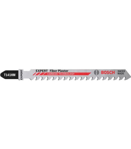 Lame de scie sauteuse EXPERT Fiber Plaster T141HM – Pour scies sauteuses Carbide Technology pour des performances de longue durée Longue durée de vie pour la découpe dans les matériaux de construction abrasifs Durabilité exceptionnelle garantie par la technologie Bosch Carbide Technology Large denture a pas constant pour gérer des matériaux épais et résistants Convient a toutes les scies sauteuses a emmanchement en T Longue durée de vie pour la découpe dans les matériaux de construction abrasifs 1Durabilité exceptionnelle garantie par la technologie Bosch Carbide Technology 2Large denture a pas constant pour gérer des matériaux épais et résistants 3Denture latérale pour couper efficacement les matériaux plus épais EXPERT Fibre Plaster pour une longue durée de vie pour la découpe dans les matériaux de construction abrasifs Les matériaux résistants nécessitent une lame de scie sauteuse robuste, mais vous en avez également besoin pour bien couper. Les lames usées ne font pas le travail, c'est ainsi que longévité et qualité vont de pair avec EXPERT Fibre Plaster. Ses dents en carbure coupent les matériaux abrasifs les plus résistants tels que les panneaux de fibro-ciment, les plaques de plâtre et les plastiques renforcés de fibres de verre. Et elles continuent a assurer une productivité maximale. La lame de scie sauteuse Bosch EXPERT Fibre Plaster est conçue pour réaliser des coupes répétées dans les matériaux les plus abrasifs. Cette lame est le choix idéal pour les professionnels qui doivent s'attaquer a un travail difficile comme la pose de cloisons seches et se décline en deux longueurs : la lame T141HM pour un contrôle maximal et la lame T341HM, plus longue, pour une meilleure portée.> ...
