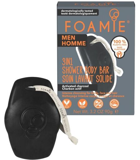 Le What a Man de Foamie est un produit 3 en 1 pour le corps, le visage et les cheveux. Nettoie et hydrate grâce aux huiles végétales, au beurre de cacao et au charbon actif. Découvrez une alternative aux produits traditionnels avec notre soin solide 3 en 1 qui est : ultra-moussant, sent divinement bon et ne dessèche pas la peau grâce à un pH optimisé. Son design unique offre une bonne prise en main. Un produit bon pour vous et pour l'environnement doté d'une formule clean*, végan et non testé sur les animaux.*0% d'huiles minérales, 0% PEG, 0% de savon, 0% de parabènes, 0% de silicones, 0% lilial ...