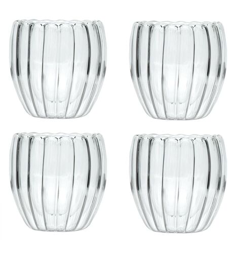 Intirilife 4x Verre Thermique À Double Paroi - Striped Style - 190ml De Contenance - Soufflé À La Bouche, Isolé Pour Latte Macchiato, Comme Verre À Thé Ou À Café Avec Anse