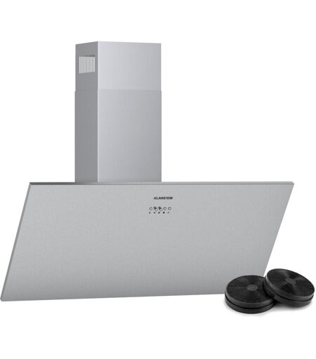 Klarstein - Hotte Aspirante 90cm, Hottes de Cuisine Inclinées, Filtre de Hotte en Aluminium, Débit d'Air Puissant 68m³/h, led, Ecran Tactile,