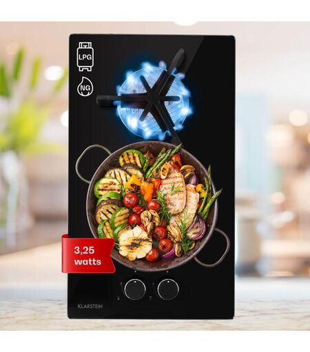Klarstein - Plaque de Cuisson Gaz 2 Feux, Table de Cuisson à Gaz à 2 Brûleurs, Plaque Gaz de 3.25kW, Piano Cuisine Gaz en Acier Inoxydable, Plaque de