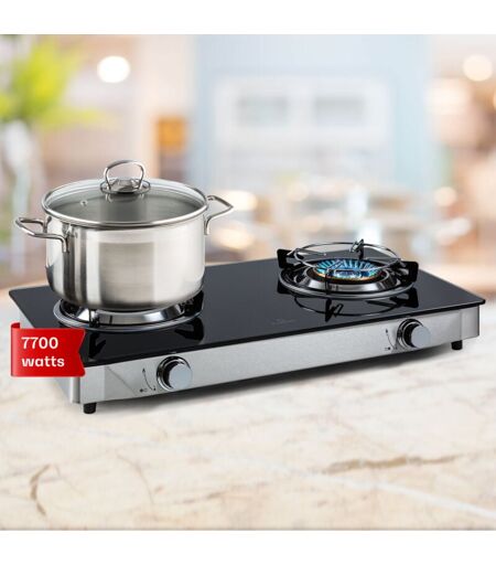 Klarstein - Plaque de Cuisson Gaz 2 Feux, Table de Cuisson à Gaz à 2 Brûleurs, Plaque Gaz de 7.7 kW, Piano Cuisine Gaz en Acier Inoxydable, Plaque de
