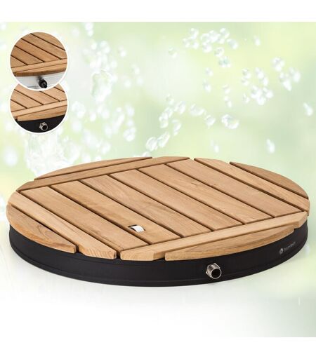 Entrez dans l'eau fraîche : la douche de sol blumfeldt Sumatra Teak Round vous rafraîchit pendant les chaudes journées d'été. Cette année, il sera très facile de garder la tête froide dans le jardin. La douche d'extérieur Sumatra Teak Round blumfeldt s'en charge de manière simple et efficace. Raccordez simplement cette merveille de fraîcheur à un tuyau d'arrosage et profitez-en. Grâce à la molette de réglage pratique au pied, vous pouvez non seulement d'ouvrir l'eau, mais aussi régler la hauteur de la fontaine jusqu'à 4 mètres. La douche est doublement rafraîchissante, car l'eau vient du sol. Un jet d'eau fraîche par le bas, puis un autre jet d'eau doux par le haut. Ainsi, la Sumatra Teak Round de blumfeldt convient aussi parfaitement comme douche de sauna - d'autant qu'elle trouve facilement sa place même dans des espaces limités. Le mélange astucieux de matériaux robustes garantit un plaisir rafraîchissant de longue durée. La base de la douche est en aluminium anodisé surmontée d'un ...