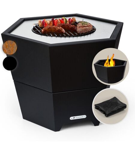 BLUMFELDT Brasero Exterieur pour le Jardin, Brasero Grill Barbecue Gril, Couverture Pluie, Bol en Acier, Brasero Bbq Hexagonal avec Foyer Camping, Brûleur à