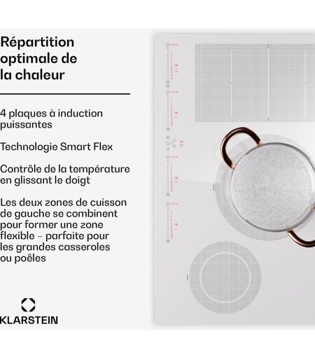 Klarstein - Plaque Induction en Céramique de 7200W, Plaque de Cuisson Electrique à Induction, Plaque Induction 4 Feux, Tables de Cuisson, Plaques